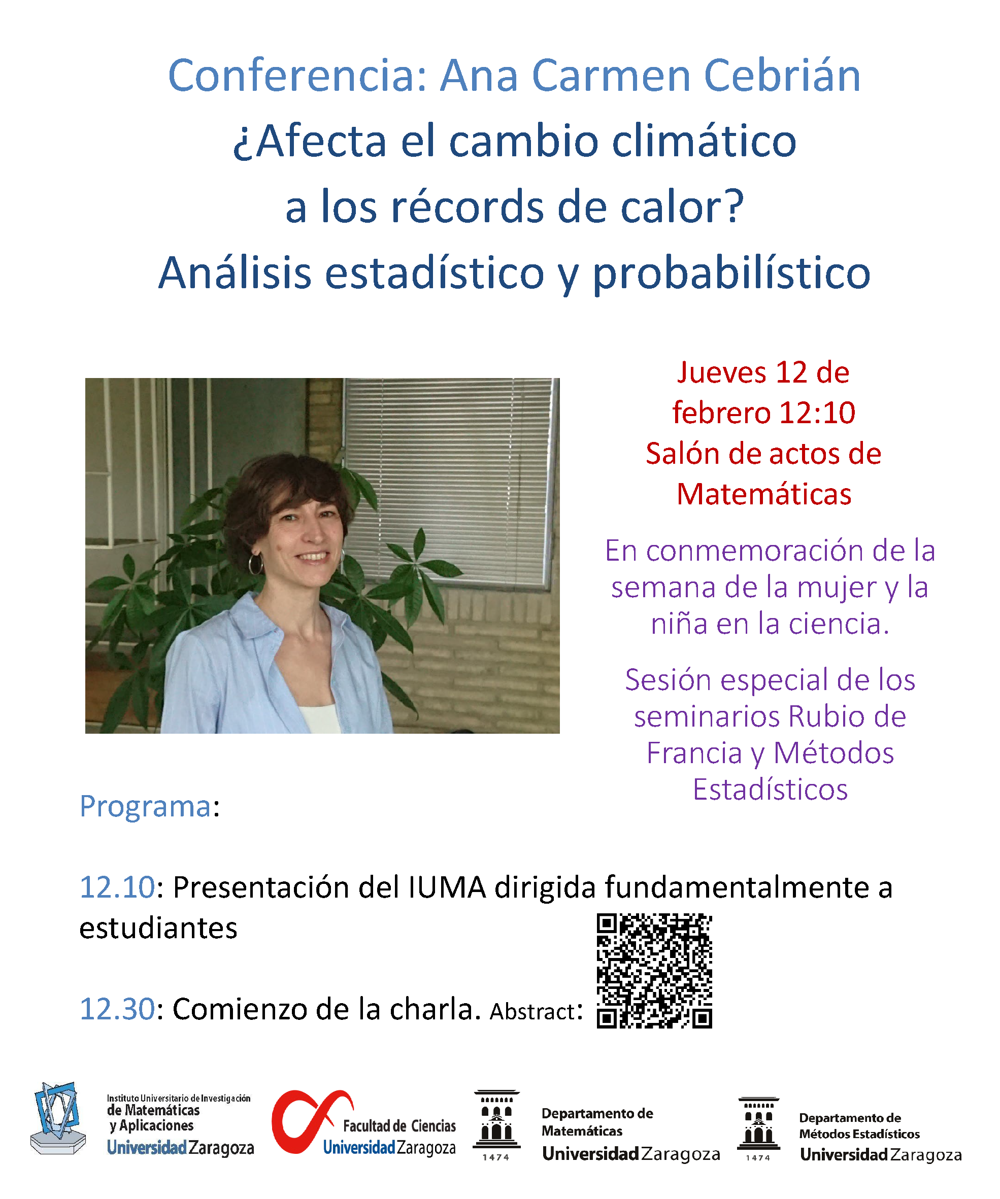 Ana Carmen Cebrián (Universidad de Zaragoza) impartirá la conferencia “¿Afecta el cambio climático a los récords de calor? Análisis estadístico y probabilístico”