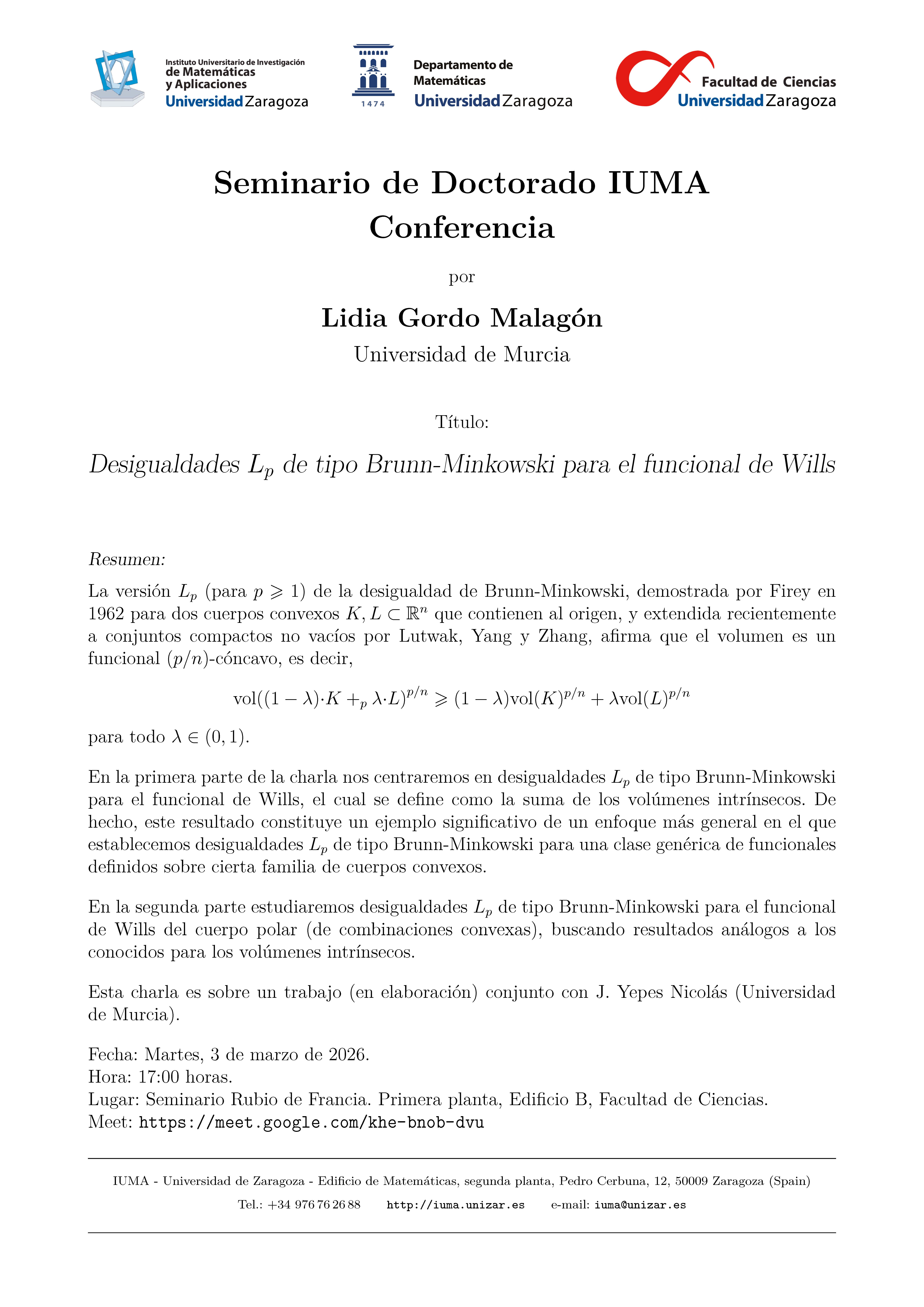 Lidia Gordo Malagón (Universidad de Murcia) impartirá la conferencia "Desigualdades Lp de tipo Brunn-Minkowski para el funcional de Wills"